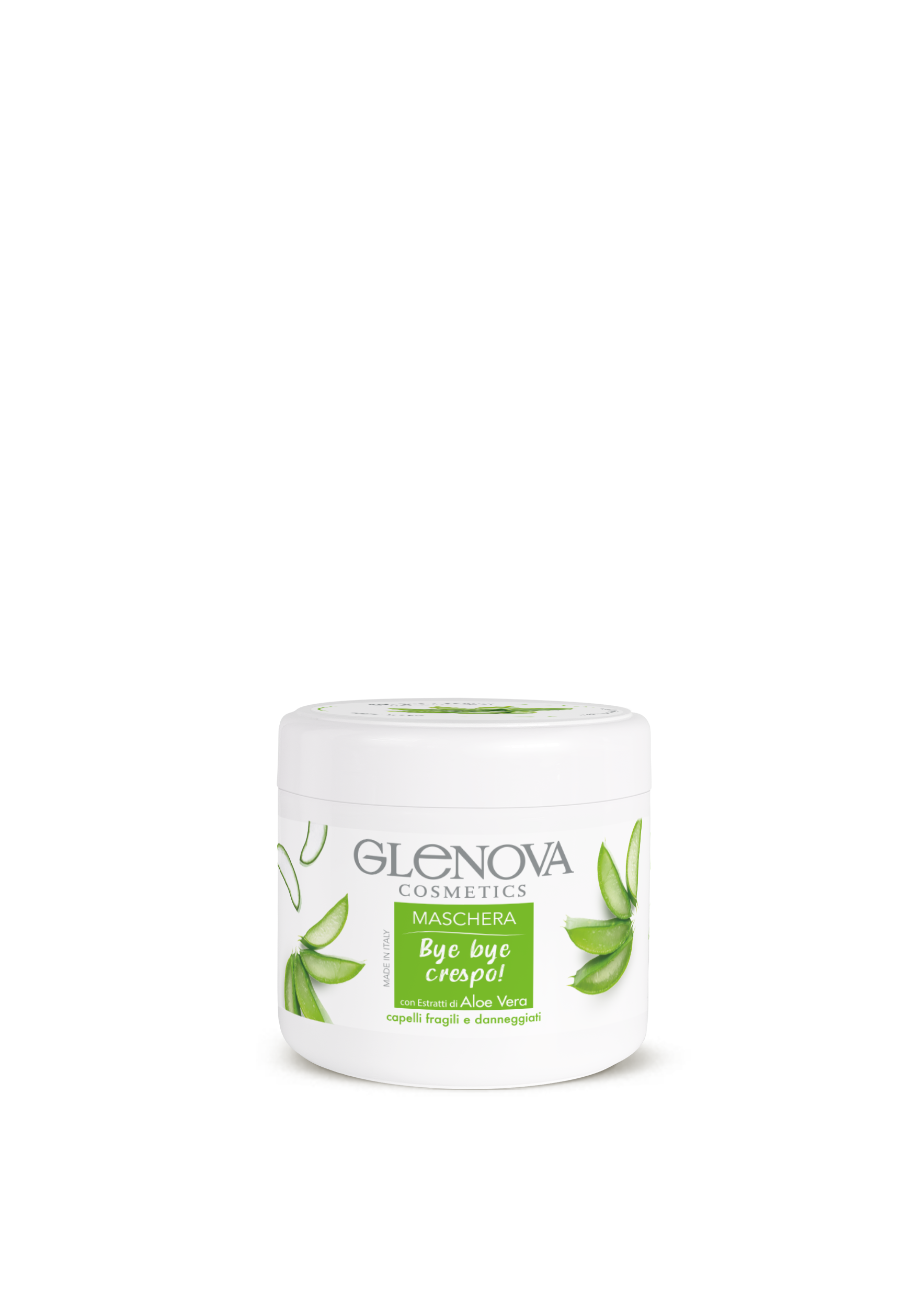 Coadiuvante cosmetico noto per le sue proprietà rigeneranti e il suo contenuto ricco in Vitamine e Sali Minerali, l'Aloe Vera arricchisce questa esclusiva formula priva di siliconi e paraffina rendendola un trattamento ideale per capelli fragili e danneggiati. Modo d'uso: distribuire una noce di prodotto sulle lunghezze, evitando il cuoio capelluto. Massaggiare delicatamente e lasciare agire per 5 minuti; infine risciacquare con cura. Per un risultato ancora più intenso usalo in sinergia con Shampoo e Balsamo della stessa linea Bye bye crespo! e con il 99% Aloe Vera DermoGel Glenova!