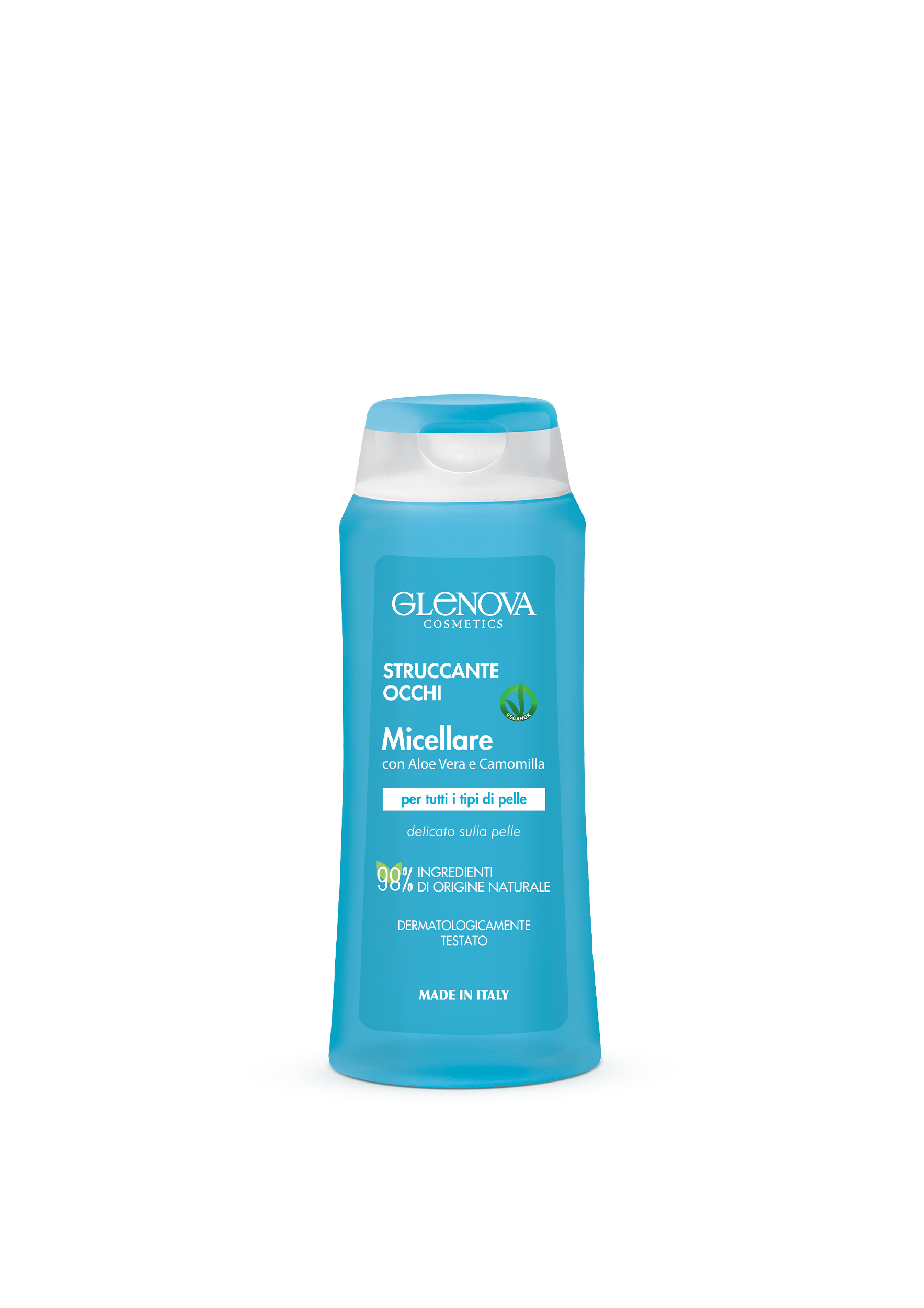 Lo Struccante Occhi Micellare Glenova deterge delicatamente, asportando ogni traccia di trucco. La sua particolare formula è arricchita con estratti di Camomilla e Aloe Vera. Modo d'uso: applicare delicatamente su palpebre e ciglia con l'aiuto di un dischetto di cotone.